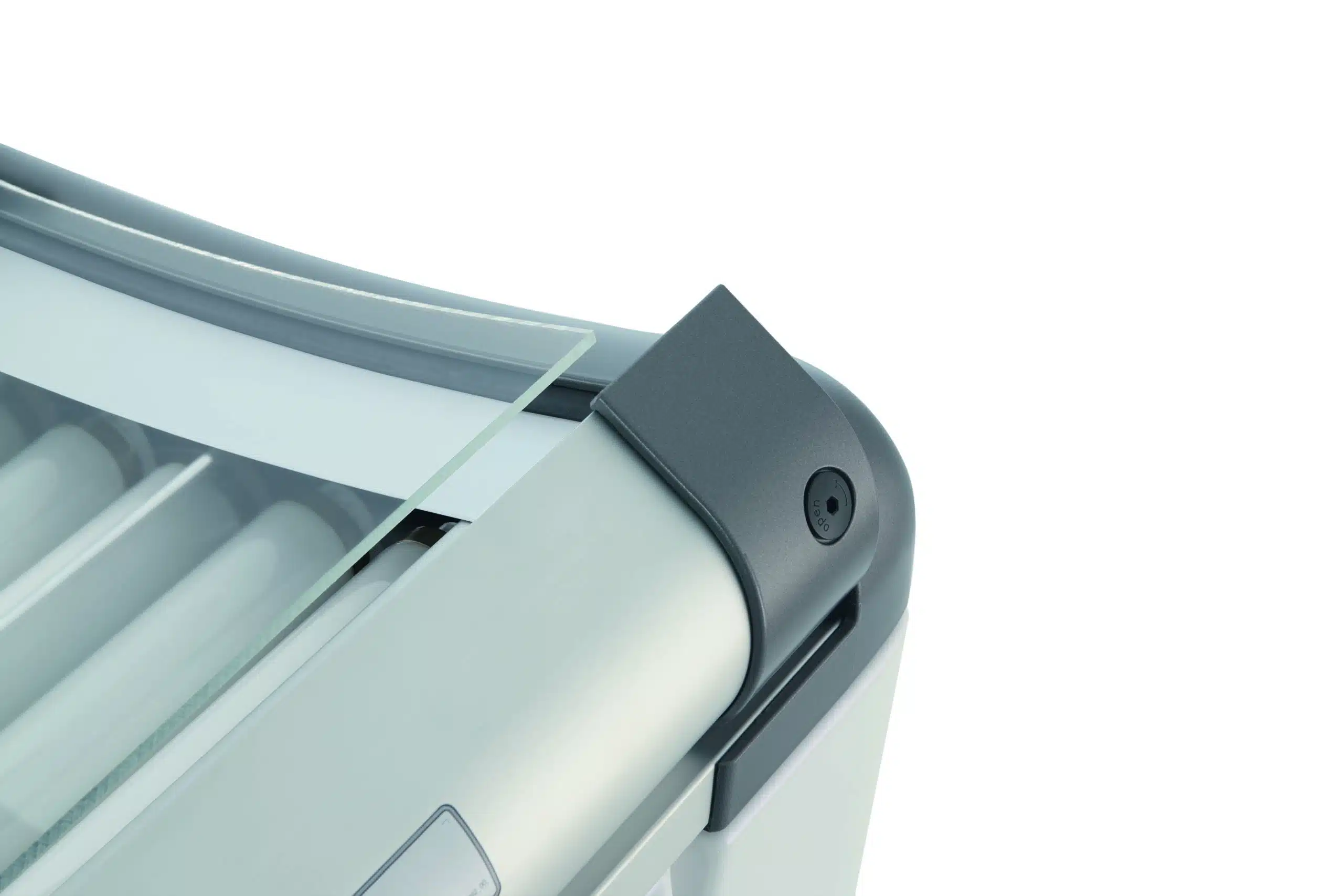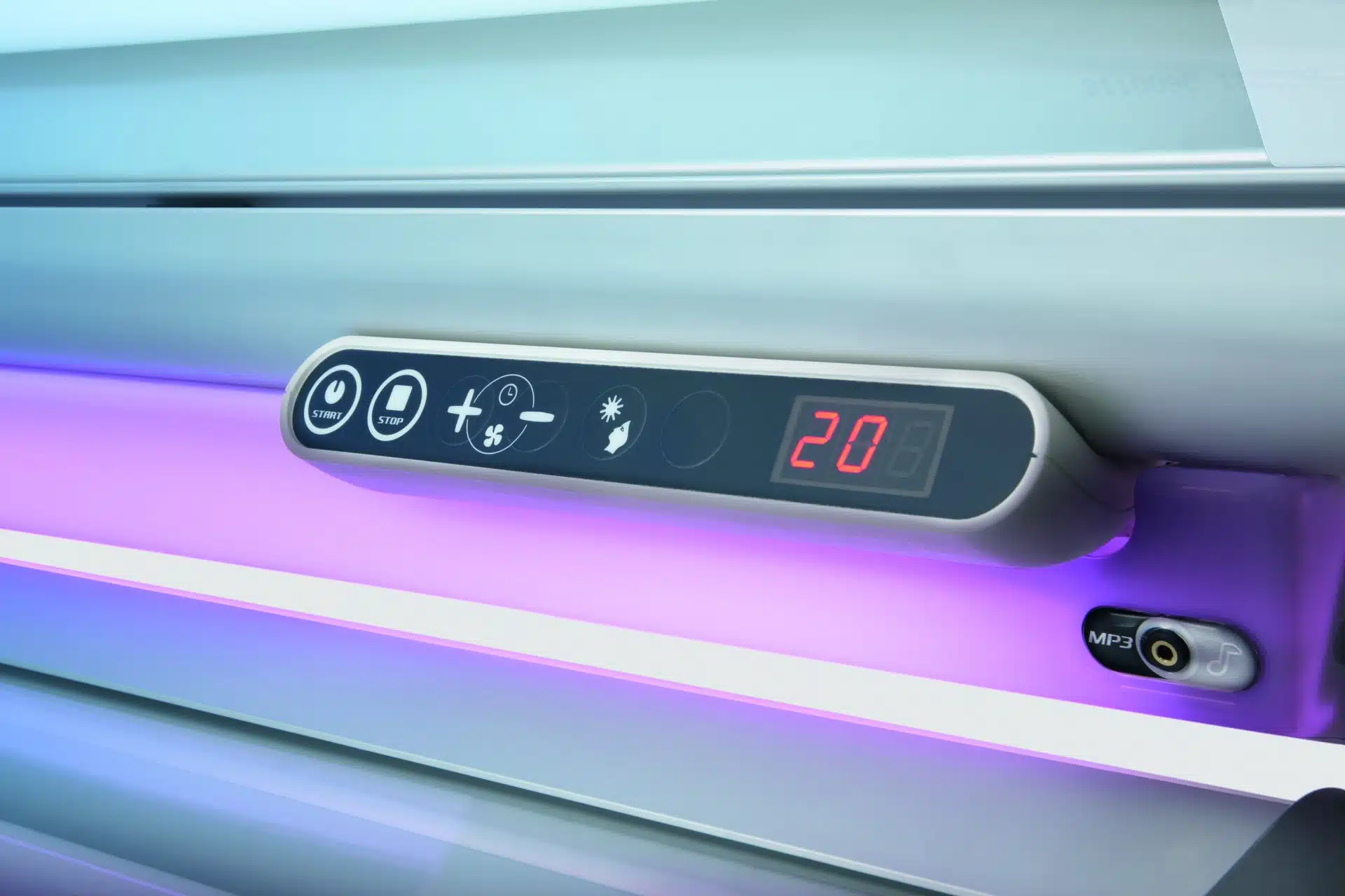 Het solarium wordt gestart en gestopt via het gebruiksvriendelijke display. De ventilator kan ook in meerdere trappen worden geregeld en uitgeschakeld.