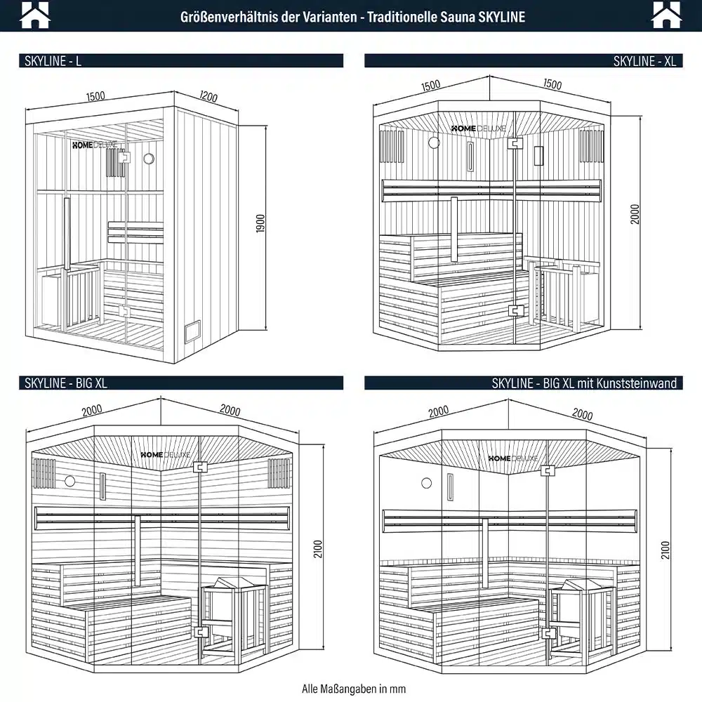 De kern van de “Skyline L” is een krachtige saunakachel (4,5 kW) van de Finse merkfabrikant “Harvia”. En niet alleen de saunakachel schijnt door de hoogste kwaliteit.