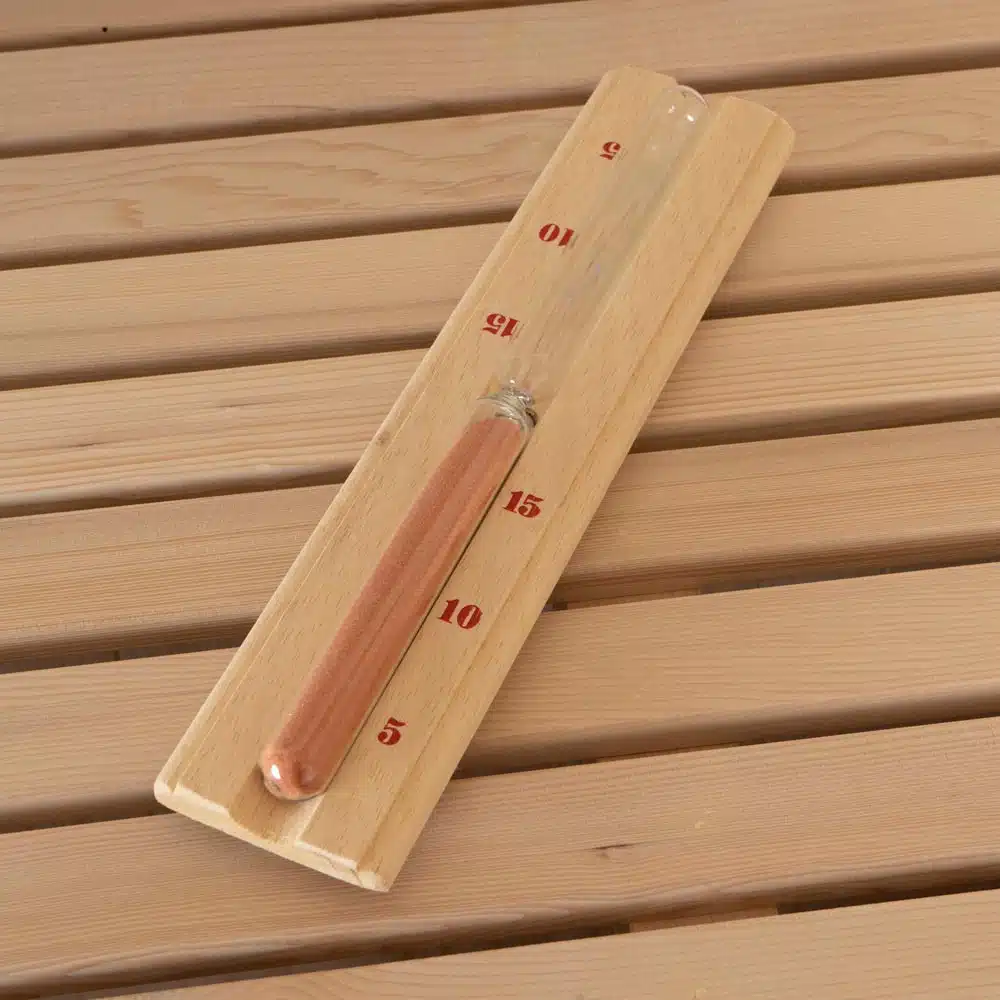– 1 x accessoires compleet (saunastenen, twee sauna lichten, beker, pollepel, zandloper en thermometer)