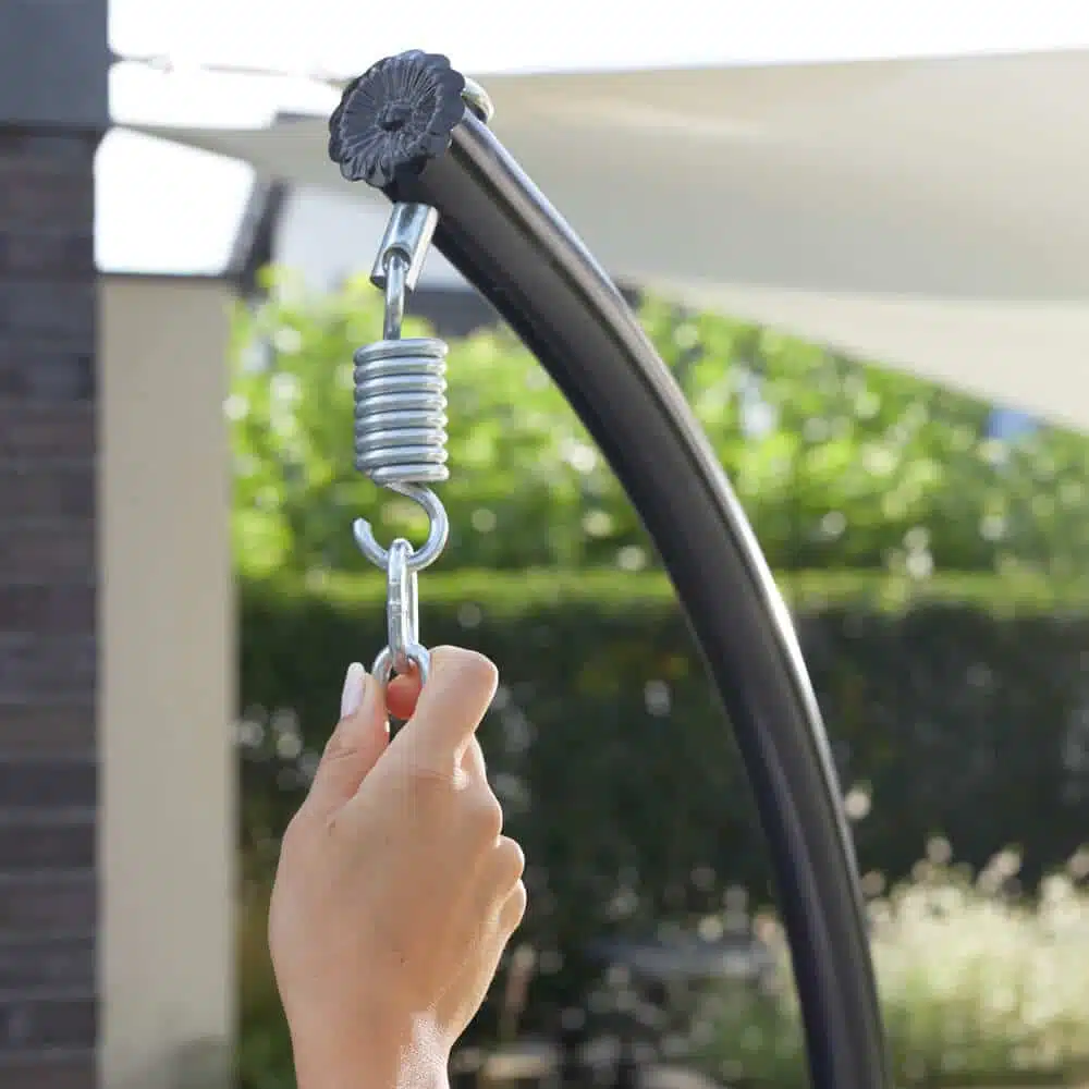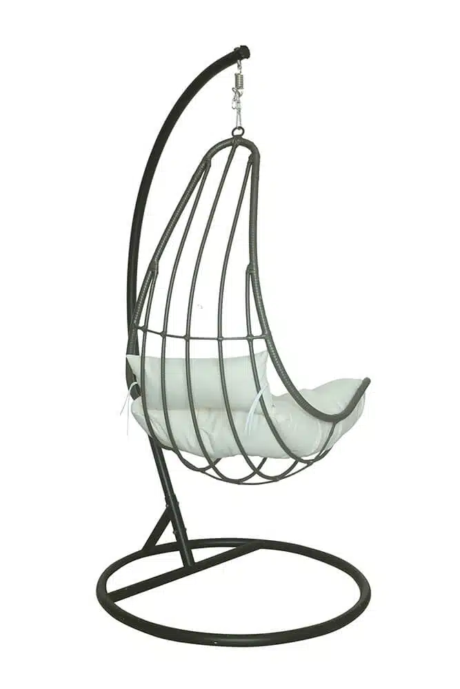 De vrijhangende hangstoel is extreem slijtvast en weerbestendig.Ā Elegant gevormd en gehouden in een grijze tint, past het in elke sfeer.Ā Het metalen frame is stabiel en extra stabiel, terwijl de verende vering deze fauteuil nog comfortabeler maakt.Ā Als je eenmaal plaats hebt genomen, wil je niet meer zonder deze hangstoel.