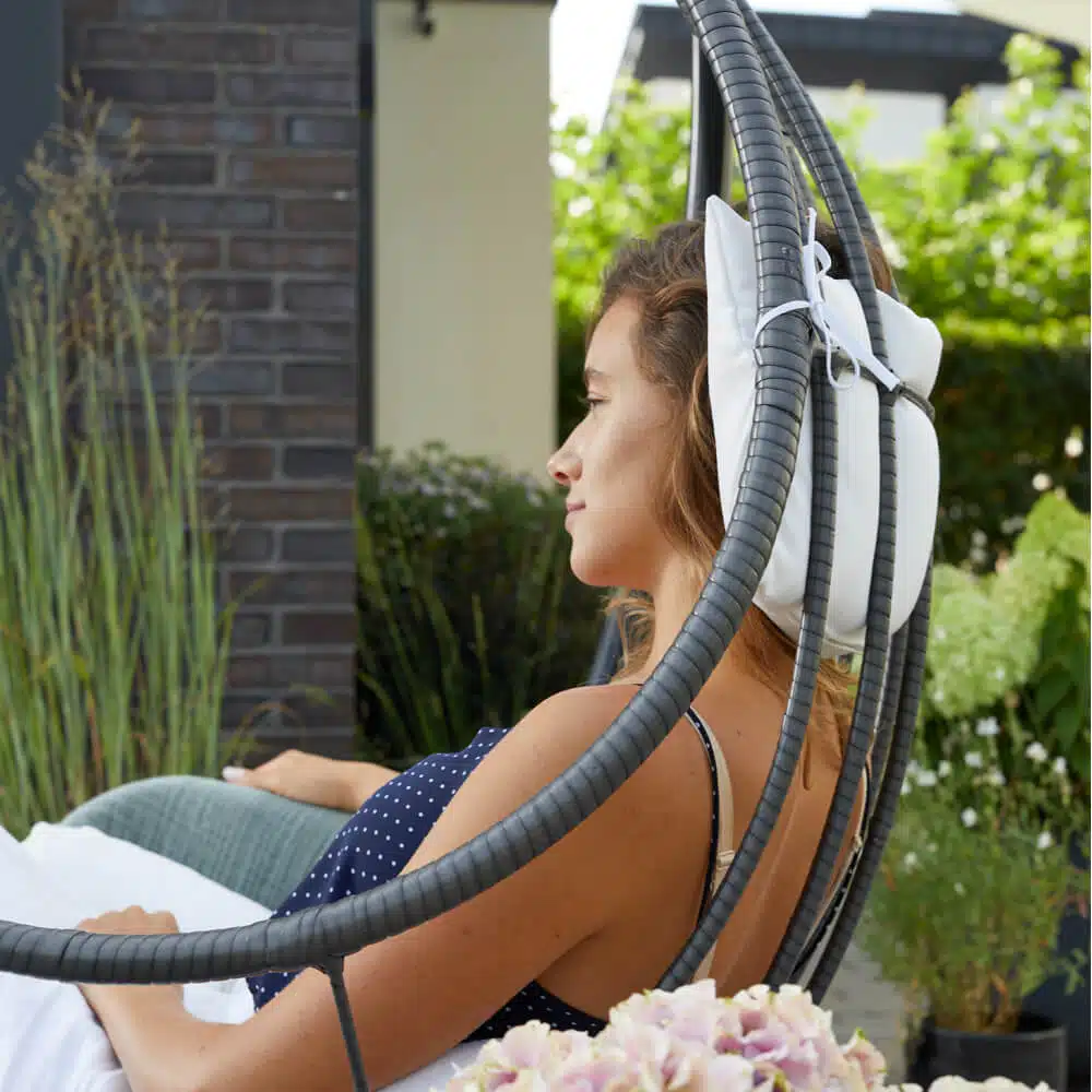 …in onze polyrattan hangstoel CAMA ben je in goede handen.