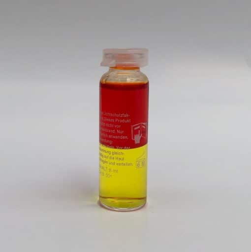 De gele fase bevat een ingrediëntconcentraat dat diep in de huid doordringt, waardoor het een sensationele diepe kleur krijgt. De rode fase bevat de vitamines A, C en E, evenals geselecteerde oliën (hennepolie, walnotenhuidolie en wortelolie). De huid wordt fluweelzacht en de voortijdige veroudering van de huid wordt tegengegaan.